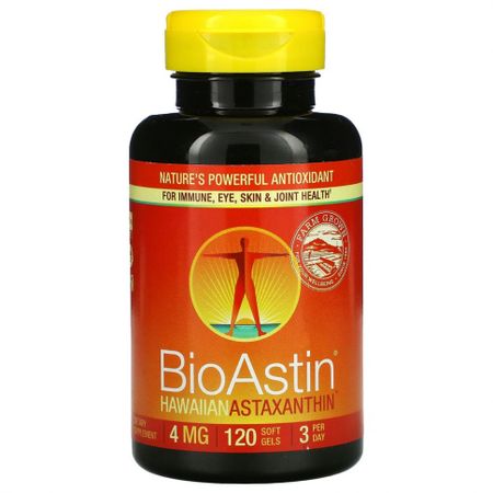 ** Суточная норма не определена. Эффективный природный антиоксидантДля повышения иммунитета и здоровья глаз, кожи и суставовВыращено на ферме для вашего благополучияОтсутствие ГМО в составе подтверждено сертификатом IGEN – Non-GMO TestedОтсутствие следов глифосатов подтверждено сертификатом Glyphosate Residue FreeСертификат Certified Gluten FreeПищевая добавка3 капсулы в деньВыращивается естественным способом на нашей ферме в Кихол-Пойнт на Гавайях с 1990 годаМы определяем стандарты качества микроводорослей с 1984 годаКлиническими исследованиями с участием людей было доказано, что астаксантин поддерживает:Здоровье иммунной системыЗдоровье глазЗдоровье кожи, подвергающейся воздействию ультрафиолета и солнечных лучейЗдоровье суставовЗдоровье сердечно-сосудистой системыВосстановление после тренировок