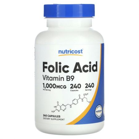 Nutricost, Фолиевая кислота, 1000 мкг, 240 капсул