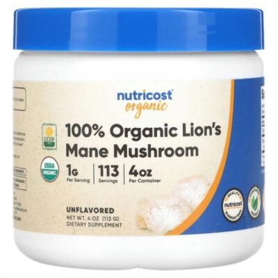 Главная » Аптека Nutricost, Органический, 100% органический гриб львиная грива, без добавок, 1 г, 113 г (4 унции) Просмотров 3 Nutricost
