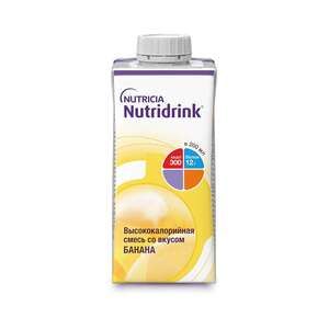 Специализированный продукт диетического лечебного и диетического профилактического питания жидкая высококалорийная смесь для энтерального питания Нутридринк со вкусом банана для ускорения восстановления в период лечения и реабилитации. Продукт предназначен для взрослых пациентов с недостаточностью питания или риском ее развития, возникающими при инсульте, травмах, инфекциях, хронической обструктивной болезни легких, хронических заболеваниях системы пищеварения, в пред- и послеоперационный периодВысококалорийный продукт содержит натуральные каротиноиды, витамины группы B, С, Е , D3 , К, фолиевую и пантотеновую кислоты, микроэлементы (хром, селен, медь) и минеральные вещества (натрий, калий, кальций, фосфор, магний, железо, цинк, марганец).В линейке представлено 3 вкуса для разнообразия рациона: ваниль, клубника, банан.Может употребляться в качестве дополнительного или единственного источника питания. Клинически значимый эффект наступает при приеме не менее чем в течение 14 дней. Длительность приема не ограничена (1–3 бутылочки в день как дополнение к диете, 5–7 бутылочек в день как единственный источник питания, если иное не назначено врачом). Только для энтерального питания. Не использовать парентерально