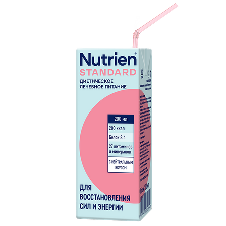 полноценное диетическое лечебное (энтеральное) питание для людей, нуждающихся в нутритивной поддержке, которым необходим дополнительный источник питательных веществ, содержит легкоусвояемый белок и энергию для сохранения веса и сил пациентов в период лечения и реабилитации. Ключевые особенности: • Жиры состоят на 50% из среднецепочечных триглицеридов, что способствует быстрому усвоению энергии, даже в условиях ферментативной недостаточности (отсутствие или дефицит липазы). Присутствие в смеси среднецепочечных триглицеридов позволяет назначить ее в ранние сроки после операций, в том числе на желудочно-кишечном тракте, при ограниченном усвоении жиров у больных с нарушениями функции пищеварительной системы. • Белки представлены нативным молочным белком, который легко усваивается и обладает высокой биологической ценностью и биодоступностью. • Оптимальное соотношение ПНЖК (Омега 6, Омега 3 жирные кислоты), витаминно-минеральный комплекс обеспечивают выраженный антиоксидантный и иммуномодулирующий эффект. • Хорошая органолептика (не приторные, низкая вязкость) способствует высокой приверженности к диетотерапии. • Не содержит глютен, лактозу и холестерин в клинически значимых количествах. • Не содержит искусственных красителей и ароматизаторов. Форма выпуска: Жидкая готовая смесь объемом 200 мл в упаковке Tetra Pak с нейтральным вкусом. К упаковке прилагается одноразовая трубочка.