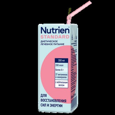 полноценное диетическое лечебное (энтеральное) питание для людей, нуждающихся в нутритивной поддержке, которым необходим дополнительный источник питательных веществ, содержит легкоусвояемый белок и энергию для сохранения веса и сил пациентов в период лечения и реабилитации. Ключевые особенности: • Жиры состоят на 50% из среднецепочечных триглицеридов, что способствует быстрому усвоению энергии, даже в условиях ферментативной недостаточности (отсутствие или дефицит липазы). Присутствие в смеси среднецепочечных триглицеридов позволяет назначить ее в ранние сроки после операций, в том числе на желудочно-кишечном тракте, при ограниченном усвоении жиров у больных с нарушениями функции пищеварительной системы. • Белки представлены нативным молочным белком, который легко усваивается и обладает высокой биологической ценностью и биодоступностью. • Оптимальное соотношение ПНЖК (Омега 6, Омега 3 жирные кислоты), витаминно-минеральный комплекс обеспечивают выраженный антиоксидантный и иммуномодулирующий эффект. • Хорошая органолептика (не приторные, низкая вязкость) способствует высокой приверженности к диетотерапии. • Не содержит глютен, лактозу и холестерин в клинически значимых количествах. • Не содержит искусственных красителей и ароматизаторов. Форма выпуска: Жидкая готовая смесь объемом 200 мл в упаковке Tetra Pak с нейтральным вкусом. К упаковке прилагается одноразовая трубочка.