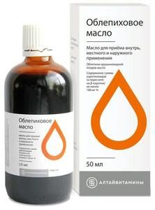 Маслянистая жидкость оранжево-красного цвета с характерным запахом. Допускается наличие осадка, растворяющегося при нагревании до 40°С.Масло облепихи оказывает противовоспалительное, ранозаживляющее, противомикробное, обезболивающее, общеукрепляющее, желчегонное и обволакивающее действие. Ускоряет заживление язвенного дефекта, уменьшает кислотность желудочного сока, защищает слизистую оболочку желудка. Препятствует развитию атеросклероза, снижает содержание холестерина и триглицеридов в крови. Облепиховое масло активно применяется в гинекологии при лечении эрозий и других женских недугов.Применяется внутрь, наружно и для ингаляций.