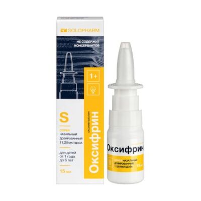 Показания При местном применении оксиметазолин не оказывает системного действия. T1/2 оксиметазолина при его интраназальном введении составляет 35 ч. 2.1% оксиметазолина выводится с мочой и около 1.1% с калом. Фармакологическое действие Оксиметазолин оказывает сосудосуживающее действие. При местном нанесении на воспаленную слизистую оболочку полости носа уменьшает ее отечность и выделения из носа. Восстанавливает носовое дыхание. Устранение отека слизистой оболочки полости носа способствует восстановлению аэрации придаточных пазух полости носа, полости среднего уха, что уменьшает вероятность возникновения бактериальных осложнений (гайморита, синусита, среднего отита). При местном интраназальном применении в терапевтических концентрациях не раздражает и не вызывает гиперемию слизистой оболочки полости носа. Препарат Оксифрин, спрей назальный дозированный 11.25 мкг/доза начинает действовать быстро, в течение нескольких минут. Препарат Оксифрин, спрей назальный дозированный 22.5 мкг/доза действует с 25 секунды. Продолжительность действия препаратов до 12 ч. Результаты двойного слепого плацебо-контролируемого исследования у пациентов с острым вирусным ринитом в возрасте 12-70 лет показали, что применение препарата в концентрации 22.5 мкг/доза сокращает медиану продолжительности насморка с 6 до 4 дней. Лекарственное взаимодействие Замедляет всасывание местноанестезирующих препаратов, удлиняет их действие. При одновременном применении с ингибиторами МАО (в течение предшествующих 2 недель и в течение 2 недель после их отмены), трициклическими антидепрессантами или другими препаратами, способствующими повышению АД, может наблюдаться повышение АД. Совместное назначение других сосудосуживающих препаратов повышает риск развития побочных эффектов.