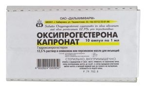 Прозрачная маслянистая жидкость светло-желтого или золотисто-желтого цвета.Примечание. В процессе хранения допускается выпадение кристаллов или кристаллизация всего содержимого ампулы. В случае выпадения кристаллов или кристаллизации всего содержимого ампулы, ампулу следует нагреть в кипящей водяной бане при встряхивании. Если кристаллы исчезнут и раствор станет прозрачным, а при охлаждении до 36-38 °C кристаллы не выпадут вновь, раствор годен к употреблению.