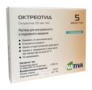 Показания к применениюАкромегалия (при недостаточной эффективности хирургического лечения, радиотерапии, медикаментозного лечения агонистами допаминовых рецепторов) . опухоли, характеризующиеся повышенной продукцией соматолиберина (рилизинг-фактор СТГ) . купирование симптомов, обусловленных наличием секретирующих опухолей гастро-энтеро-панкреатической системы (в т.ч. карциноидные опухоли с наличием карциноидного синдрома, глюкагономы, инсуломы, гастриномы) . профилактика осложнений после операций на поджелудочной железе . диарея у больных СПИД, рефрактерная к другим видам терапии.Применение при беременности и кормлении грудьюОпыт применения октреотида у беременных женщин ограничен. Препарат Октреотид следует использовать при беременности только в случае, если предполагаемая польза для матери превышает потенциальный риск для плода.Неизвестно, попадает ли препарат в грудное молоко, поэтому при применении препарата в период лактации, следует отказаться от грудного вскармливания.Применение при нарушениях функции печениРекомендуется коррекция поддерживающей дозы у больных с нарушением функции печени.Применение при нарушениях функции почекУ больных с нарушением функции почек коррекция режима дозирования октреотида не требуется.Применение у детейОпыт применения октреотида у детей ограничен.Применение у пожилых пациентовВ настоящее время нет данных, которые бы свидетельствовали о том, что у лиц пожилого возраста снижена переносимость октреотида и для них требуется изменение режима дозирования.Противопоказанияповышенная чувствительность к октреотиду или другим компонентам препарата,детский возраст до 18 лет.С осторожностью: холелитиаз (желчнокаменная болезнь), сахарный диабетСоставРаствор для в/в и п/к введения прозрачный, бесцветный, без запаха.1 млоктреотид (в форме ацетата) 300 мкгВспомогательные вещества: натрия хлорид — 9 мг, вода д/и — до 1 мл.Раствор для в/в и п/к введения прозрачный, бесцветный, без запаха.1 млоктреотид (в форме ацетата) 600 мкгВспомогательные вещества: натрия хлорид — 9 мг, вода д/и — до 1 мл.