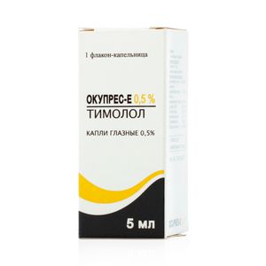 Показания к применениюДля применения в офтальмологии: повышение внутриглазного давления, хроническая открытоугольная глаукома, закрытоугольная глаукома (в качестве дополнительного средства в сочетании с миотиками), вторичная глаукома (в т.ч. афакическая), врожденная глаукома (при неэффективности других терапевтических мероприятий).Применение при беременности и кормлении грудьюБезопасность и эффективность применения при беременности не изучены.ПротивопоказанияAV-блокада II и III степени, синоатриальная блокада, брадикардия, СССУ, артериальная гипотензия, хроническая сердечная недостаточность IIБ-III стадии, острая сердечная недостаточность, вазомоторный ринит, болезнь Рейно и другие облитерирующие заболевания сосудов, метаболический ацидоз, лактация.Побочное действиеСо стороны органа зрения: при местном применении возможны раздражение и гиперемия конъюнктивы, кожи век, жжение и зуд в глазах, слезотечение, светобоязнь, отек эпителия роговицы, точечная поверхностная кератопатия, гипестезия роговицы, диплопия, птоз, сухость глаз. При проведении фистулизирующих антиглаукомных операций возможно развитие отслойки сетчатки в послеоперационном периоде. При системном применении возможны сердечная недостаточность, брадикардия, AV-блокада, артериальная гипотензия; головная боль, нарушения сна, кошмарные сновидения, астения, возбуждение, депрессия, парестезии и похолодание конечностей; тошнота, рвота, диарея; одышка, бронхоспазм; мышечная слабость; кожные аллергические реакции, обострение псориаза, сухость конъюнктивы.Состав1 мл тимолол (в форме малеата) 5 мг.