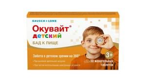 Более 90 % информации об окружающем мире ребенок получает через органы зрения и это особенно важно для дальнейшего развития личности. Хорошее зрение способствует гармоничному формированию интеллекта, мировоззрения и уверенности в себе. В связи с этим болезни глаз у детей — это не только медицинская проблема. Необходимость усваивать большие объемы информации способствует значительному увеличению нагрузки на органы зрения, начиная с детского возраста.По итогам всероссийской диспансеризации в 2017-2018 годах было отмечено, что распространенность миопии среди учеников 1-х классов составила 2,4 %, среди учеников 5-х классов — 19,7 %, среди выпускников школ — 38,6 %. Одной из причин роста числа детей с данной проблемой офтальмологи считают активное использование компьютеров.Исследования показали, что рассматривание информации на достаточно близком расстоянии со светящегося экрана более утомительно, чем чтение книг или просмотр телепередач.После традиционных занятий зрительное утомление регистрировалось у 8,6 % учащихся, тогда как после занятий с компьютером — у 38,3 %.Очень важно обеспечить детей надежным комплексом мероприятий при повышенной нагрузке и стрессах, к которым относится правильное освещение рабочего места, дозированная нагрузка на глаза, регулярное выполнение упражнений для глаз и прием витаминов и микроэлементов, которые нужны для поддержания здорового зрения.Проведенные Институтом питания РАМН популяционные исследования показали недостаточное потребление витаминов (С, Е, группы В), микроэлементов (железа, цинка, йода, селена) значительной частью населения Российской Федерации, причем статистика среди школьников свидетельствует о получении ими лишь 50 % от необходимого количества витамина С, 31–36 % витаминов группы В, 21 % витамина Е. Витамины (С, Е, группы В) и микроэлементы (цинк, селен и другие) должны поступать с пищей или с биологически активными добавками к пище в случае несбалансированной диеты.«Окувайт детский» — поликомпонентный продукт, содержащий лютеин, зеаксантин, антоцианы из экстракта плодов черники (Vaccinium myrtillus), таурин, витамины группы В (В1, В3/РР, В5, В6, В9, В12), витамины D3, С, Е и цинк, селен. Все входящие в состав БАД к пище «Окувайт детский» компоненты обеспечивают защиту зрительного аппарата, обладают антиоксидантным эффектом и снижают риск заболеваний глаз у детей.