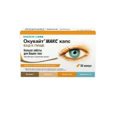 Биологически активная добавка к пище «Окувайт® Макс капс» (капсула средней массы 735 мг). Область применения: в качестве биологически активной добавки к пище — источника лютеина и зеаксантина, дополнительного источника витаминов С и Е, минеральных веществ: меди, селена, цинка.