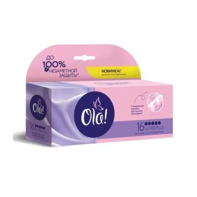 Ola! TAMPONS SUPER PLUS Шелковистая поверхностьВпитываемость 4 капли (из 4)Гигиенические тампоны Ola! производятся исключительно из высококачественных современных материалов, что обеспечивает надежный и безопасный уровень гигиены в критические дни.Индивидуальная упаковка с системой вскрытия «Twist-off» позволяет максимально удобно и гигиенично использовать тампон, 8-дольные желобки равномерно раскрывают тампон внутри тела и надежно удерживают влагу.Шелковистое покрытие тампона «Silky comfort» обеспечивает комфортное введение.Тампоны БЕЗ аппликатора