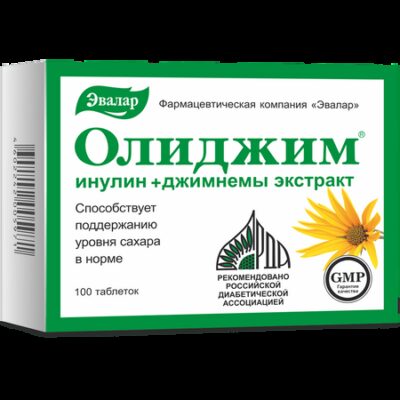 Олиджим — биологически активная добавка к пище для поддержания уровня сахара в норме.Активное вещество:инулин, экстракт джимнемыОписание активных компонентов:В кислой среде желудка инулин преобразуется во фруктозу — естественный сахарозаменитель, который дает энергию мышцам и тканям, не влияя на уровень сахара в крови.Листья джимнемы благодаря джимнемовым кислотам замедляют процессы всасывания лишнего сахара из пищи, поэтому он не попадает в кровь и безопасно выводится из организма; кроме того джимнемовые кислоты поддерживают работу поджелудочной железы и здоровую выработку инсулина.