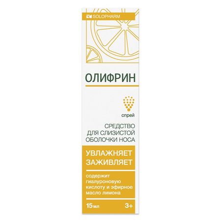 Олифрин — препарат №1 по рекомендации ЛОРов для восстановления и защиты слизистой оболочки носа БЕЗ ПРИВЫКАНИЯ взрослых и детей от 3-х лет*. Олифрин — ОРИГИНАЛЬНЫЙ** препарат с доказанной эффективностью и натуральным составом для увлажнения, защиты и заживления за слизистой носа при ее повреждении как неотъемлемая часть лечения и профилактики. В состав препарата для увлажнения слизистой носа Олифрин входят натуральные компоненты: • Гиалуроновая кислота — обеспечивает равномерное и длительное увлажнение слизистой носа, создает защитный барьер от вирусов, бактерий и др. неблагоприятных факторов окружающей среды; • Витамин Е — оказывает противовоспалительное и заживляющее действие; Препарат Олфирин предназначен для ухода за слизистой носа при нарушении ее структуры и микрофлоры, в том числе в составе комплексной терапии в период беременности и от 3-х лет. Значительно уменьшает выраженность сухости и корок в период отопительного сезона, осени/зимы, сокращается количество эпизодов насморка и ОРВИ. Благодаря этому нормализуется дыхание во время сна и общее самочувствие. Олифрин показан к применению для: • профилактики повреждений и сухости в носу, защиты от ОРВИ; • удаления сухих корок в носу; • восстановления и защиты слизистой при повышенной кровоточивости, а также после длительного использования сосудосуживающих препаратов; • профилактики осложнений и ускорения регенерации после операции на полости носа; • устранения симптомов сухости, вызванных негативным воздействием окружающей среды. Препарат Олифрин разрешается применять взрослым, беременным и детям с 3-х лет. *по объему назначений ЛОРами в категории медицинских изделий для слизистой оболочки носа, применяемых при сухости и корках в носу, Ipsos, Prindex, 2023 год, 4 кв. ** По данным ГРМИ январь 2024.