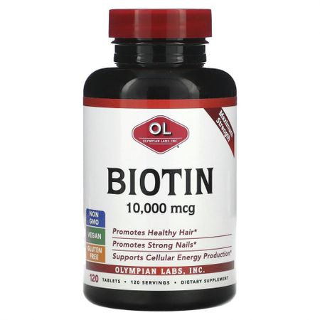 Olympian Labs, биотин, 10 000 мкг, 120 таблеток