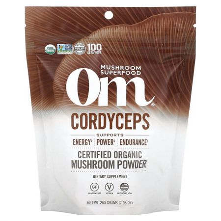 Сертификат USDA OrganicСертификат Non-GMO Project Verified2000 мг смеси грибов, выращенных компанией OM, в 1 порцииПоддерживает уровень энергии, силу, выносливостьПищевая добавкаБез глютенаВеганский продуктПодходит для людей, соблюдающих кетодиетуПодходит для людей, соблюдающих палеодиетуВся польза грибов для обогащения кишечной флорыВысокая эффективность и отсутствие специфического запахаРазнообразие питательных веществПроверено на наличие тяжелых металловПолностью прозрачная проверка происхожденияОрганический продукт, сертифицированный Organic CertifiersКошерный продукт, сертифицированный Earth KosherСуперфуд среди суперфудов.Грибы содержат множество уникальных биоактивных питательных веществ, которые невозможно найти только в источниках растительного или животного происхождения. Каждая порция Om содержит 2000 мг смеси сертифицированного органического грибного порошка.КордицепсНатуральный продукт.Если и существует органический гриб, который не исчезнет, то это кордицепс. Этот эффективный гриб был первоначально обнаружен тибетским пастухом высоко в горах. Ценимый травниками, кордицепс помогает поддерживать физическую энергию и активность, оптимизируя потребление кислорода и повышая выносливость. Повысьте внутреннюю силу и выносливость для достижения своих целей.Мы в OM сами выращиваем наши грибыМы выращиваем различные виды грибов на нашей закрытой ферме в Калифорнии, заботясь о сохранении полной питательной ценности на протяжении всего цикла выращивания. Цельные грибы важны, поскольку они содержат полный спектр активных соединений для поддержания оптимального здоровья. Так что вы можете быть уверены в эффективности бета-глюканов.