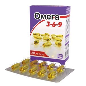Биологически активная добавка к пище «Омега-3-6-9» изготовлена путем капсулирования в мягкие желатиновые капсулы смеси высокоочищенного рыбьего жира, стабилизированного смесью натуральных токоферолов, льняного и кедрового масла.Включение БАД «Омега 3-6-9» в рацион питания оказывает благоприятное комплексное воздействие на организм при: Повышенном риске развития сердечно-сосудистых заболеваний, Повышенной физической и нервно-психической нагрузке, стрессах, Профилактике простудных заболеваний, Сезонных депрессиях, Высоком холестерине, Ломкости волос и сухости кожи, В период восстановления после перенесенных заболеваний, При несбалансированном и неполноценном питании и в период соблюдения диет.ПНЖК Омега-3-6-9: поддерживают здоровое развитие головного мозга и нервной системы, способствуют развитию когнитивных функций: памяти, логического мышления, концентрации внимания, оптимизируют иммунные функции организма, способствуют нормальному функционированию сердечно-сосудистой системы, поддерживают здоровье суставов, улучшают настроение, уменьшают чувство тревоги, необходимы для здоровья волос и кожи, закладки и развития зубов.Содержание в 1 капсуле, мг:ПНЖК Омега-3 — 340 мг, в том числе эйкозапентаеновая кислота — 72 мг, докозагексаеновая кислота — 48 мг, альфа-линоленовая кислота — 200 мг,ПНЖК Омега-6 — 320 мг, в том числе линолевая кислота — 248 мг, гамма-линолевая кислота — 72 мг,ПНЖК Омега-9 (олеиновая кислота) — 176 мг.