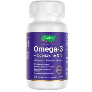 Омега-3 + Коэнзим Q10/ Omega-3 + Coenzyme Q10.Мощная смесь незаменимых жирных кислот и натурального убихинона, который усиливает антиоксидантные свойства препарата.Активное вещество: Омега-3: ЭПК эйкозапентаеновая кислота и ДГК докозагексаеновая кислота, коэнзим Q10Действие: Двойная формула коэнзима и Омега-3 научно обоснована и имеет доказанную эффективность. Она способствует: снижению уровня триглицеридов в крови, активной антиоксидантной защите клеток организма, регулированию сердечно-сосудистой деятельности.Омега-3 + Коэнзим Q10 от Evalar Laboratory представляет собой оптимальное сочетание питательных веществ, направленных на поддержание здоровья сердца и всего организма.Каждая капсула препарата изготовлена из экологически чистых компонентов рыбы из Перу и натурального коэнзима Q10, который не содержит примесей и является абсолютно гипоаллергенным.В ходе производства мы используем уникальные запатентованные процессы очищения, которые гарантируют отсутствие загрязняющих веществ и насыщенных жиров в препарате Омега-3 + Коэнзим Q10 от Evalar Laboratory.Чтобы предотвратить прогоркание капсул на всем периоде срока годности, препарата мы используем смесь натуральных токоферолов и ведем работы с концентрированным рыбьим жиром в безвоздушной среде азота.Каждая капсула Омега-3 + Коэнзим Q10 от Evalar Laboratory содержит оптимальную концентрацию коэнзима в высокоусвояемой форме убихинона и составляет 100% суточной нормы.Капсулы Омега-3 + Коэнзим Q10 удобно принимать: всего 1 капсула в день позволит вам поддержать здоровье сердца, мозга и глаз.Омега-3 + Коэнзим Q10 от Evalar Laboratory — это уникальная комбинация с доказанной эффективностью, которая: способствует поддержанию здоровья сердца и сосудов, позволяет контролировать уровень холестерина в организме, замедляет процессы старения, оказывает положительное влияние на здоровье мозга и его когнитивные функции, является частью антиоксидантной защиты организма.Чтобы препарат приносил максимальную пользу для здоровья сердца, мы выбрали оптимальное соотношение ЭПК И ДГК — (500:200).Омега-3 + Коэнзим Q10 от Evalar Laboratory выпускается в условиях фармацевтического производства, что позволяет нам гарантировать высочайшее качество препарата. Требования, предъявляемые к качеству концентрированного рыбьего жира, соответствуют американской и Европейской фармакопеям.Сырьём для производства Омега-3 служат глубоководные рыбы, такие как анчоусы, лосось и сардины. Место вылова – Перу.Мягкие желатиновые капсулы не содержат красителей и диоксида титана.Одной упаковки – 30 капсул – вам хватит на полный месячный курс.