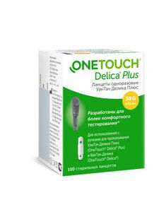 Ланцеты для использования с ручкой для прокалывания OneTouch® Delica® PlusОписание Ланцеты для использования с ручкой для прокалывания OneTouch® Delica® Plus. Практически безболезненное тестирование!*В упаковке 25 или 100  стерильных ланцетов.ВАЖНО! Ланцеты не предназначены для повторного использования. 1 тестирование = 1 ланцет. Используйте новый стерильный ланцет OneTouch® Delica® Plus при каждом тестировании для безболезненного проколаХарактеристики Тонкие ланцеты с силиконовым покрытиемЛанцеты OneTouch® Delica® Plus совместимы с ручками для прокалывания:•    OneTouch® Delica®•    OneTouch® Delica® Plus.Комплектация В упаковке 25 или 100 стерильных ланцетов.*Основано на исследовании 2018 года, проведенном в США на 103 пациентах с сахарным диабетом с использованием ручки для прокалывания OneTouch(R) Delica® PlusPlus – Плюс.