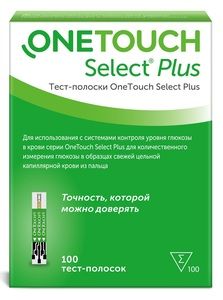Тест-полоски для глюкометра OneTouch Select® Plus. Точность, которой можно доверять!Описание: Тест-полоски OneTouch Select® Plus предназначены для использования с глюкометром OneTouch Select® Plus или OneTouch Select Plus Flex® для количественного измерения глюкозы (сахара) в образцах свежей цельной капиллярной крови из пальца.Точность, доказанная 7-летними клиническими исследованиями*Тест-полоски OneTouch Select ® Plus соответствуют требованиям к точности системы согласно ISO 15197:2013 и превысили их в ходе клинического исследования**Точность, которой можно доверять!Характеристики:• Тест-полоска сама втягивает кровь• Точный результат за 5 секунд• Точность, доказанная 7-летними клиническими исследованиями*• Достаточно всего 1 мкл крови• Соответствие последнему стандарту точности ISO 15197:2013*Внутренние данные компании LifeScan. При оценке клинической точности использовали стандартный референтный метод, оценку проводили в соответствии с ГОСТ P ИСО 15197-2015 «Тест-системы для диагностики in vitro. Требования к системам мониторинга глюкозы в крови для самоконтроля при лечении сахарного диабета» (ISO 15197:2013).** В клиническом исследовании, проведенном в соответствии с требованиями ISO 15197:2013, 97,7% результатов были в пределах +/-15 мг/дл (<100 мг/дл) или +/-15% (≥100 мг/дл) и 99,6% результатов были в зоне А (определяется как “отсутствие влияния на клиническое действие”). Комплектация:В упаковке 1 флакон с 25 тест-полосками/1 флакон с 50 тест-полосками/2 флакона по 50 тест-полосок.
