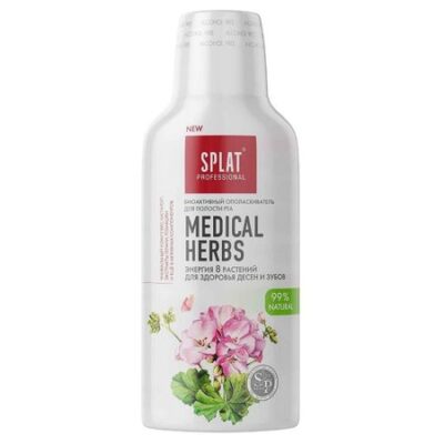 Ополаскиватель для полости рта SPLAT «лечебные травы» Ополаскиватель Splat Лечебные травы — эффективное профилактическое средство: Удобно использовать после еды и после чистки полости рта; Активные ингредиенты ополаскивателя прекрасно проникают в труднодоступные места, обеспечивая абсолютное очищение; Дополняет профилактическое действие зубной пасты Splat Professional «Лечебные травы»; Надолго освежает дыхание; Незаменим при наличии ортодонтических и ортопедических конструкций; Можно использовать в ирригаторах. Инновационная, защищенная патентом система LUCTATOL® блокирует развитие кариесогенных бактерий и до 96 % защищает от образования зубного налета. Растительные экстракты ромашки, шалфея, облепихи и боярышника обеспечивают профилактику воспалений и кровоточивости десен. Лактат кальция повышает плотность эмали и снижает ее чувствительность. Натуральный фермент из папайи и высокоэффективный антисептик Биосол служат для защиты от образования налета и оказывают противоспалительное действие на десны. Активные компоненты: Экстракт Шалфея эффективен при болезнях десен (воспаление и кровоточение) и для терапии «плохого запаха изо рта». Экстракт Ромашки оказывает антибактериальное, противовспалительное действие. Обладает дезодорирующим эффектом, способствует заживлению ран. Тетранатрия глютамат диацетат (Dissolvine) оказывает очищающее действие, против пигментированного налета. Лактат кальция (Кальцис) реминерализует эмаль и обладает высокой биодоступностью. Экстракт Боярышника обладает противовоспалительными, противомикробными свойствами. Антиоксидант. Экстракт Облепихи обладает сильными противовоспалительными и антибактериальными свойствами и оказывает анальгезирующее действие. Антиоксидант. Комплекс молочных ферментов (сочетание лактоферрина, лактопероксидазы и оксидазы глюкозы) — уникальное безопасное антибактериальное действие. В сочетании с экстрактом лакричника демонстрирует антикариесную эффективность. Папаин разрушает белковую основу налета, осветляет эмаль. Экстракт Лакричника обладает выраженными антибактериальными свойствами (в частности, против микробов в полости рта, таких как S. mutans), в результате чего ингибируется образование кариеса. Является антиоксидантом и оказывает противовоспалительное воздействие. Эфирное масло Герани является активным антиоксидантом, обладает антибактериальными свойствами, имеет противовоспалительный и кровоостанавливающий эффект. Эфирное масло Камфоры обладает выраженной антибактериальной активностью, в частности против штамма S. Mutans. Натуральный подсластитель сухой экстракт Стевии оказывает противовоспалительное воздействие на организм. Антиоксидант.