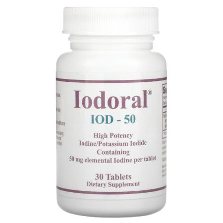 Пищевая ценностьРазмер порции: 1 таблеткаПорций в упаковке: 30 Количество в 1 таблетке% от суточной нормы*Всего йода/йодида50 мг33333%Йод20 мг Йодид (в виде калийной соли)30 мг * Процент от суточной нормы при условии потребления 2000 калорий в день Высокоэффективный продуктЙод / йодид калияСодержит 50 мг элементарного йода на таблеткуПищевая добавкаЙодорал® обеспечивает йод в виде йода и йод-калий.