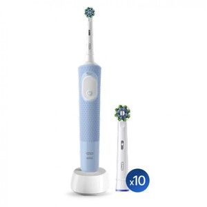 Электрическая зубная щётка Oral-B Vitality Pro + Насадка для эффективной чистки Oral-B CrossActionПреимущества:3 режима чистки. Три режима чистки позволяют чистить зубы наиболее подходящим для вас образом:Ежедневная чисткаБережнаяЭкстра бережнаяЭффективное устранение налёта. Круглая головка Oral-b Vitality PRO охватывает каждый зуб и обеспечивает превосходное очищение зубов, бережно удаляя до 100% больше налёта.Встроенный таймер. Встроенный таймер помогает чистить зубы в течение двух минут в соответствии с рекомендациями стоматологов и сигнализирует каждые 30 секунд о необходимости сменить зону чистки.Заряжаемый аккумулятор. Аккумуляторная зубная щетка с удобной батареей, обеспечивающей длительную работу устройства.Характеристики: Технология чистки: 2D. Возвратно-вращательные движения: 7 600 в минуту. Режимы: ежедневная чистка, для чувствительных зубов, суперчувствительная чистка. Таймер: завершение чистки — 2 минуты, смена области чистки — 30 секунд. Питание: аккумулятор, тип элементов питания — Ni-MH, зарядка от сети. Время работы аккумулятора: 32 минуты. Цвет: голубой. Материал корпуса: пластик. Прорезиненная ручка. Комплектация: зубная щётка, насадка Cross Action, зарядное устройство, гарантийный талон, инструкция по эксплуатации.