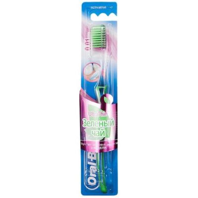 Уникальная зубная щетка “Oral-B с Ультратонкими Щетинками и Экстрактом Зеленого Чая” для бережной и качетсвенной чистки. Более здоровые десны за 14 дней Экстра мягкая зубная щетка от бренда Oral-B с ультратонкими щетинками и экстрактом зеленого чая. Щетинки 0.01 мм. обеспечивают бережную чистку по отношению к деснам без ущерба для качества чистки. Ультратонкие щетинки проникают в 2 раза глубже между зубов, чем обычные щетки в линейке зубных щеток Oral-B. Щетка подходит для бережной чистки чувствительных зубов и десен. Преимущества: — Щетинки с экстрактом зеленого чая обладают успокаювающим эфектом — Ультратонкие щетинки проникают в 2 раза глубже между зубов, чем обычные щетки