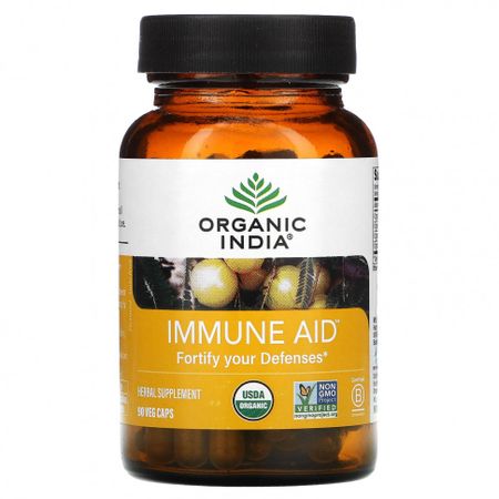 Информация о добавкахServing Size: 2 CapsulesServing Per Container: 45 Amount Per Serving%Daily Value*Organic Amla (Emblica officinalis) (fruit) 254 mg*Organic Turmeric (Curcuma longa) (rhizome)254 mg*Organic Neem (Azadirachta indica) (leaf)252 mg*Organic Turmeric (extract min 90% curcuminoids)40 mg**Daily Value not established. Растительная добавка Сертификат USDA Organic Сертификат Non-GMO Project Verified Сертификат B Corporation Веганский продукт Вегетарианский продукт Без глютена Кошерный продукт Халяльный продукт В основе Organic India лежит наше стремление быть живым воплощением любви и осознанности в действии. Растворы из цельных трав, устойчиво выращиваемых небольшими семейными фермерами с использованием регенеративного органического сельского хозяйства. Здоровый образ жизни Immune Aid может помочь укрепить иммунную систему, используя уникальное сочетание древних трав. Эта мощная смесь трех незаменимых трав веками использовалась в аюрведе для укрепления естественной защиты организма.