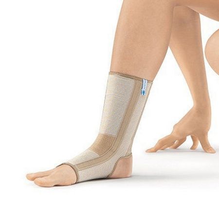 Бандаж изготовлен из эластичной ткани, технологичного заменителя хлопка, усилен четырьмя боковыми пружинными ребрами жесткости. Описание: Бандаж изготовлен из эластичной ткани, технологичного заменителя хлопка, усилен четырьмя боковыми пружинными ребрами жесткости. Легкий компрессионный эффект бандажа BAN-101 (M) способствуют улучшению кровообращения и сокращению сроков лечения и реабилитации. Комфортный бандаж легко надевают на тело, не вызывает аллергии. Назначения: хроническая нестабильность голеностопного сустава растяжения связок голеностопного сустава реабилитационный период лечения травм и заболеваний области голеностопного сустава профилактика развития и обострений хронического течения артритов, бурситов, тендовагинитов, спортивных и производственных травм Особенности: спиральные ребра жесткости ограничивают варусное и вальгусное отклонение стопы при ходьбе компрессионный и массажный эффекты