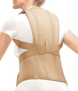 Корректор осанки ортопедический фиксирует позвоночник в правильном положении за счет ребер жескости и системы нерастяжимых ремней, минимизируя патологическую нагрузку на позвонки и связочно-мышечный аппарат, благодаря чему снижается болевой синдром, чувство усталости и перенапряжения, сокращаются сроки лечения.