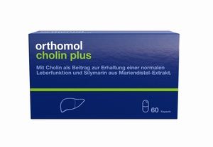 Витаминный комплекс для печени Orthomol Cholin Plus (Ортомол Холин Плюс) с холином является качественным дополнением для поддержания нормальной функции печени. Cholin Plus включает в себя силимарин из экстракта плодов расторопши. Силимарин является гепатопротектором, защищает печень от воздействия токсинов и используется для лечения заболеваний печени.Orthomol Cholin Plus помогает печени обезвреживать различные чужеродные вещества: аллергены, яды и токсины, удалять из организма избытки гормонов, путём расщепления их в безвредные, менее токсичные и легче удаляемые из организма соединения. Поскольку печень весьма чутко реагирует на лекарства, алкоголь, курение, некачественные продукты, наш организм нуждается в ее полноценной работе. Orthomol Cholin Plus с холином поможет очистить организм и как нельзя лучше восстановить нормальное функционирование печени.