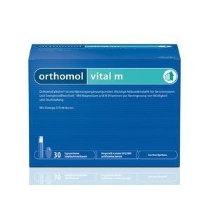 Витаминный комплекс Ортомол Витал м разработан для мужчин с целью борьбы против стресса и егопоследствий, таких как переутомление, раздражительность, апатия и расстройства сна. Комплекс содержит витамины имикроэлементы, которые нормализуют работу нервной системы и стимулируют обменные процессы, обеспечивающиеорганизм энергией и избавляющие от чувства усталости. вещества, стимулирующие обменные процессы и нормализующие работу нервной системы – витамины С, B1, B2, B6 и B12, пантотеновая и никотиновая кислоты, биотин, соединения магния, йода, меди и марганца; антиоксиданты – витамины С, Е и B2, соединения цинка, селена, меди и магния; жирные кислоты Омега-3, необходимые для нормального функционирования клеточных мембран.