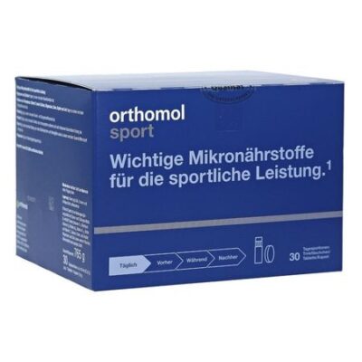 Бренд Ортомол (Orthomol) — витамины направленного действия.Название происходит от греческого слова ortho — «правильный» и латинского moles — «масса» и принадлежит нобелевскому лауреату по химии Лайнусу Полингу. Изучая физиологию человека, Лайнус пришёл к выводу, что большинство хронических болезней обусловлено нехваткой витаминов и микроэлементов. Присутствие в организме «правильной массы» этих вещест помогает сохранить здоровье и улучшить состояние во время болезни.Фармацевтические компании творчески развили идеи Полинга. Продуктовая линейка Ортомол включает 28 комплексов для мужчин и женщин, любого возраста и образа жизни. Каждый витаминный комплекс предназначен для решения конкретных задач. Этим обусловлена эффективность витаминов Ортомол: улучшение самочувствия наступает почти сразу, излечение болезни происходит после двух-трёх курсов принятия витаминов.Витаминный комплекс Ортомол Спорт (Orthomol Sport) — предназначен для спортсменов и лиц, чья деятельность связана с высокими физическими нагрузками. Компоненты комплекса стимулируют обменные процессы и обеспечивают замечательную работоспособность, быстрое восстановление, снижение риска травм, а также отличное самочувствие даже при нагрузках высокой интенсивности.Версия комплекса Ортомол Спорт — классическая. Основными компонентами классической версии являются:-соединения магния и кальция, способствующие нормальной мышечной функции; соединения железа, на основе которых образуется гемоглобин, обеспечивающий транспортировку кислорода в организме;-антиоксиданты, такие как витамин С, а также соединения селена и цинка, поддерживающие работоспособность иммунной системы, особенно во время и после тренировок; витамины группы В, соединения кальция, магния, железа, йода и меди, а также L-карнитин и коэнзим Q10, стимулирующие процессы генерации энергию-таурин, стимулирующий процессы энергетического обмена.Orthomol Sport — быть первым, быть лучшим.Организм человека, активно занимающегося спортом, постоянно нуждается в восполнении запаса микроэлементов и витаминов. Между тем, далеко не все спортсмены могут похвастаться уникально сбалансированным питанием, которое учитывало бы все особенности организма. Кроме того, большинство продуктов, употребляемых в пищу, проходят термическую обработку, а потому теряют практически все свои полезные свойства.Применение Ортомол Спорт рассчитано на длительный курс, так как он дает накопительный эффект. Чем дольше вы используете Orthomol Sport , тем лучше сохраняется правильный баланс веществ в вашем организме.Показания к применениюОртомол Спорт рекомендуется спортсменам и людям, чья деятельность связана с высокими физическими нагрузками.Дневная порция Ортомол Спорт классической версии включает: питьевую бутылочку и таблетку.Следует принимать таблетку после еды, запивая её содержимым питьевой бутылочки.Соблюдать интервал не менее часа между принятием витаминов и началом тренировок.В суточной порции содержится:1. в питьевой бутылочке 20 млМагний 150,0 мгЦинк 6,0 мгВитамин Е 50,0 мгКаротиноиды 3,0 мгТаурин 287,0 мгL-карнитин 287,0 мгКоэнзим Q10 12,0 мгЙод 0,12 мгХром 0,029 мгМолибден 0,05 мгСелен 0,03 мг2. в 1 таблетке массой 1 граммКальций 150,0 мгМедь 0,67 мгВитамин С 12,0 мгВитамин В2 3,6 мгВитамин РР 15,0 мгВитамин В6 0,21 мгПантотеновая кислота 0,7 мгФолиевая кислота 0,02 мгВит