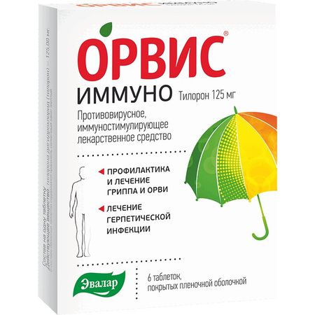Показания В составе комплексной терапии гриппа и других ОРВИ, герпетической инфекции. Профилактика гриппа и других ОРВИ. Фармакологическое действие Низкомолекулярный индуктор эндогенного интерферона. Является синтетическим соединением ароматического ряда, относится к классу флуоренонов. Стимулирует образование в организме интерферонов альфа, бета, гамма, лямбда. Основными структурами, продуцирующими интерферон в ответ на введение тилорона, являются клетки эпителия кишечника, гепатоциты, Т-лимфоциты, гранулоциты. Тилорон обладает иммуномодулирующим и противовирусным эффектом. Индукция интерферона лямбда в легочной ткани способствует повышению противовирусной защиты респираторного тракта при гриппе и других респираторных вирусных инфекциях. В лейкоцитах человека индуцирует синтез интерферона. Стимулирует стволовые клетки костного мозга, в зависимости от дозы усиливает антителообразование, уменьшает степень иммунодепрессии, восстанавливает соотношение Т-супрессоров и Т-хелперов. Эффективен против различных вирусных инфекций, в т.ч. против вирусов гриппа, других ОРВИ, вирусов гепатита и вирусов герпеса. Механизм противовирусного действия связан с ингибированием трансляции вирус-специфических белков в инфицированных клетках, в результате чего подавляется репродукция вирусов. Лекарственное взаимодействие Тилорон совместим с антибиотиками, средствами традиционного лечения вирусных и бактериальных заболеваний.