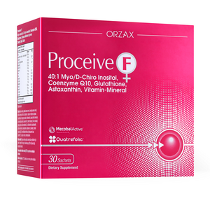 Proceive F — продукт, содержащий 15 различных активных компонентов, разработан специально для женщин. Инозитол повышает уровень фертильности,обеспечивает улучшение формирования овуляторного цикла, повышает вероятность наступления беременности. Входящие в состав компоненты направлены на поддержание женского здоровья, обеспечивают организм необходимыми витаминами и минералами для полноценного функционирования. Астаксантин, коэнзим Q-10 и глутатион обеспечивают антиоксидантную поддержку.Активные компоненты: Инозитол устраняет симптомы поликистозных яичников — серьезной патологии, нарушающей гормональный баланс у женщин и приводящей к бесплодию. Витамина С для женщин полезен при борьбе с возрастными изменениями кожи, пигментацией, регулирует метаболизм, налаживает менструальный цикл, улучшает работу головного мозга, повышает уровень энергии. Виноградные косточки обладают противовоспалительными свойствами и полезны в лечении колита, гастрита, инфекций мочевыводящих путей и кишечника. Магний поддерживает нормальной функции нервной и сердечно-сосудистой систем. Коэнзим Q10 Повышает уровень фертильности у женщин, Уровень этой способности у женщин снижается вместе с возрастом в связи с ухудшением производства яйцеклеток, в котором коэнзим Q10 принимает непосредственное участие. Глутатион устраняет свободные радикалы, замедляя процесс старения организма. Способен нормализовать содержание сахара в крови, стимулирует пищеварение, ускоряет процесс регенерации клеток после физических нагрузок. Железо участвует во множестве биологических процессов и, в первую очередь, в передаче кислорода в ткани и мышцы. Цинк участвует в восстановлении клеток кожи, волос, ногтей. Витамин Е у женщин участвует в регуляции менструального цикла и смягчает неприятные симптомы при климаксе. Также важен для полноценного питания эмбриона улучшает усвоение питательных веществ клетками. Витамин B6 облегчает протекание ПМС, снижает риск преждевременных родов, а также помогает легче пережить период менопаузы. Астаксантин внешняя защита организма. Фолиевая кислота Его главная роль — подготовка организма женщины к нагрузкам во время вынашивания ребенка и профилактика развития патологии плода. Селен распространяется на синтез половых гормонов и на процесс образования половых клеток. Крайне необходим селен для организма женщины, особенно если речь идет о беременных женщинах. Витамин В12 необходим для многих важных гормональных и метаболических функций организма. Витамина D для женщин стимулирует регенерацию клеток и повышает защитные свойства кожи, уберегая ее преждевременного старения и сокращая проникновение в организм патогенных микробов.