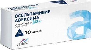 ОСЕЛЬТАМИВИР АВЕКСИМА, 30 мг, капсулы Твердые желатиновые капсулы размера №4, непрозрачные, корпус и крышечка светло-голубого цвета. Содержимое капсул — смесь гранул и порошка белого или почти белого цвета или спрессованная масса белого или почти белого цвета, рассыпающаяся при легком нажатии.