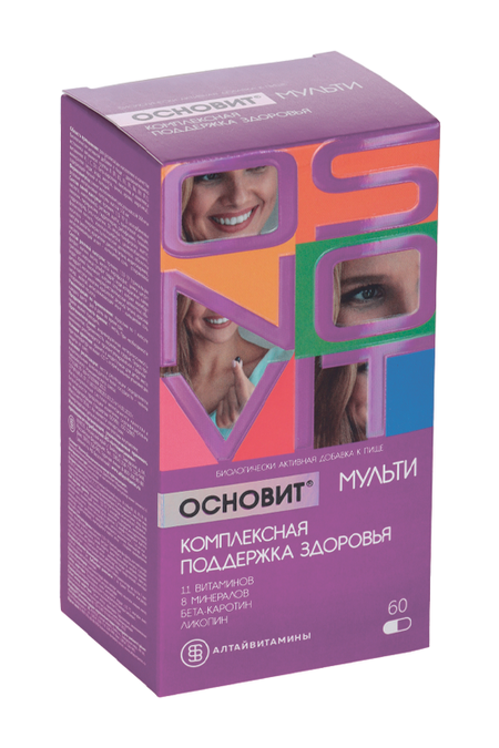 Главная » Аптека Основит Мульти Комплексная поддержка здоровья, 60 шт, капсулы Просмотров 7 Алтайвитамины АО