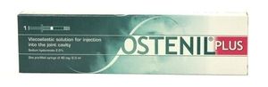 Показания к применениюВнутрисуставное введение Остенила показано при болях и ограниченной подвижности при дегенеративно-дистрофических и травматических изменениях тазобедренного, коленного сустава и других синовиальных суставов.Применение при беременности и кормлении грудьюНе рекомендуется использовать у детей, беременных и кормящих женщин.ПротивопоказанияОстенил не должен использоваться больными, страдающими ярко выраженной чувствительностью к одному из компонентов.Побочное действиеПосле внутрисуставного введения изделия медицинского назначения Остенил Плюс могут наблюдаться локальные вторичные явления, такие как боль, ощущение тепла, покраснение и припухание. Наложение льда на пунктированный сустав в течение 5–10 мин позволяет купировать подобные явления.Составнатрия гиалуронат — 20 мгманнитол — 5 мгвода для инъекций — до 1 млнатрия хлорид; натрия гидрофосфат; натрия дигидрофосфат