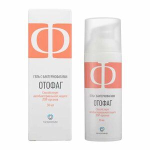Гель с бактериофагами для гигиены кожи ушных раковин «Отофаг» (далее – Отофаг) применяют с целью нормализации микрофлоры. Отофаг способствует предотвращению развития гнойно-воспалительных заболеваний бактериальной этиологии уха, горла и носа. Отофаг содержит комплекс из 72 видов бактериофагов коллекции ООО НПЦ «Микромир», подавляющих рост актуальных штаммов следующих патогенных бактерий: Acinetobacter baumannii Bacteroides fragilis Corynebacterium striatum Cutibacterium acnes (по старой номенклатуре Propionibacterium acnes) Enterobacter cloacae Enterobacter kobei Enterococcus faecalis Enterococcus faecium (по старой номенклатуре Streptococcus группы D) Klebsiella pneumoniae Klebsiella pneumoniae subsp. ozaenae Proteus mirabilis Proteus vulgaris Pseudomonas aeruginosa Staphylococcus aureus Staphylococcus capitis Staphylococcus caprae Staphylococcus epidermidis Staphylococcus haemolyticus Staphylococcus suсcinus Staphylococcus warneri Stenotrophomonas maltophilia Streptococcus pyogenes Wolinella spp.Практика применения бактериофагов:Бактериофаги (с др.-гр.-«пожиратели бактерий») — вирусы, избирательно поражающие бактерии: каждый вид бактериофагов активен только в отношении определённого вида бактерий и нейтрален в отношении других видов. Бактериофаги уничтожают патогенные бактерии, не нарушая нормофлору человека. Это позволяет применять их у всех категорий пациентов (включая новорожденных, беременных и кормящих женщин) как эффективное и безопасное антибактериальное средство для профилактики и терапии, в т. ч. в комбинации с антибиотиками. («Принципы использования бактериофагов для борьбы с инфекциями, связанными с оказанием медицинской помощи. Методические рекомендации». М., 2014). Особую актуальность имеет профилактическое использование бактериофагов в тех случаях, когда клинические признаки бактериального инфицирования отсутствуют, а применение антибиотиков нежелательно из-за их побочных эффектов. В результате применения бактериофагов снижается общее число патогенных бактерий, поддерживается нормальный баланс микрофлоры.