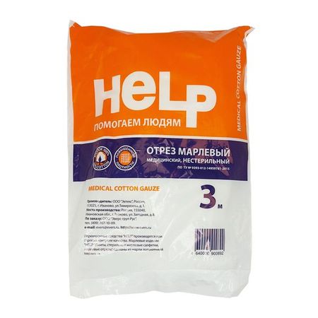 Главная » Аптека Отрез марлевый медицинский нестерильный повышенной плотности Help 90см х 3м Просмотров 14 Эвтекс ООО