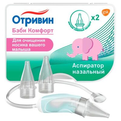 Аспиратор назальный Отривин Бэби Комфорт предназначен для детей (новорожденных, грудных, младшего возраста). Аспиратор способствует очищению носа Вашего ребенка, мягко удаляя беспокоящие его слизистые выделения.Удаление слизистых выделений помогает предотвратить дальнейшие осложнений: ушные инфекции (отит), инфекции пазух (синусит) или кашель.