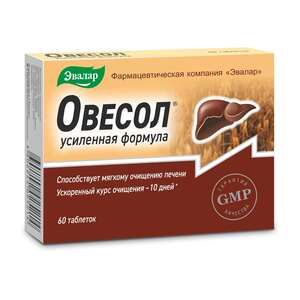 Овесол усиленная формула. Благодаря улучшенному составу способствует глубокому и бережному очищению печени, выведению токсинов. Сокращает курс очищения — 10 дней¹Активное вещество: экстракт овса молочной спелости, экстракт шиповника,экстракт володушки, экстракт бессмертника, экстракт мяты, экстракт куркумыДействие: ускоренный курс очищения печени – всего за 10 дней.Неблагоприятная экология, употребление продуктов низкого качества, вредные привычки, длительный прием препаратов — все это не лучшим образом сказывается на функциональном состоянии печени.Ослабленному органу сложно полноценно вырабатывать и выводить желчь, застой которой может привести к закупорке желчевыводящих путей, воспалению желчного пузыря и образованию камней. Очистить протоки, уменьшить застой желчи и улучшить функциональное состояние печени может помочь современный натуральный2препарат щадящего действия — «Овесол усиленная формула». В состав биологически активной добавки входят природные компоненты с высокой степенью активности: экстракты овса молочной спелости, шиповника, володушки золотистой, бессмертника, мяты и куркумы.Благодаря улучшенному составу, при курсовом приеме комплексная биодобавка «Овесол усиленная формула» способствует: глубокому и бережному очищению печени и желчевыводящих путей, уменьшению застоя желчи, снижению риска развития желчнокаменной болезни, улучшению функционального состояния печени и желчевыводящих протоков.Как работают компоненты БАД? Овес посевной определяет основной эффект биодобавки и при курсовом приеме способствует улучшению пищеварения, нормализации функций печени, защите организма от интоксикации3,4. В состав биодобавки входит овес, который выращен на собственных плантациях компании «Эвалар», скошен в фазу молочной спелости и высушен в естественных условиях. Плоды шиповника могут проявлять желчегонное, общеукрепляющее и адаптогенное действие, облегчать состояние при инфекционных поражениях печени, почек, мочевого пузыря. В биодобавке «Овесол усиленная формула» используются собранные в период полного созревания и бережно высушенные плоды. Володушка золотистая способствует поддержанию нормального тонуса печеночных протоков и петель кишечника, может облегчать выведение желчи6,7. В народе растение используется не только при патологиях печени и желчного пузыря, но и в качестве противопростудного средства. Бессмертник может улучшать состав желчи, метаболическую функцию печени, поддерживать тонус желчного пузыря и желчевыводящих протоков, выводить вредный холестерин8. Экстракт бессмертника может быть показан к применению в качестве вспомогательного средства в составе комплексной терапии холецистита, холангита, дискинезии желчных путей. Мята перечная способствует снятию спазмов печеночных протоков, лучшему отхождению и выведению желчи, улучшению пищеварения, уменьшению воспалительных процессов в организме. Экстракт растения может применяться при патологиях печени, спазмах желудочно-кишечного тракта, метеоризме, а также в качестве средства для повышения аппетита. Куркума способствует поддержанию функций печени и желчевыводящих путей, может проявлять иммуномодулирующие, антибактериальные, антиоксидантные свойства5. На протяжении многих лет в Китае куркума применяется дл