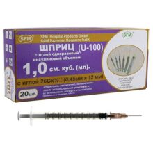 СФМ шприц одноразовый инсулиновый U-40 U-100 1мл №20