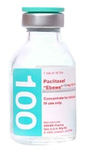 Показания к применению— рак яичников (терапия первой линии в комбинации с препаратами платины и терапия второй линии при метастазах после стандартной терапии, не давшей положительного результата) . — рак молочной железы (в качестве терапии первой и второй линии, а также адъювантного лечения) . — немелкоклеточный рак легких (терапия первой линии больных, которым не планируется проведение хирургического лечения и/или лучевой терапии /в комбинации с цисплатином/) . — саркома Капоши у больных СПИД (терапия второй линии, после неэффективной терапии липосомальными антрациклинами).Применение при беременности и кормлении грудьюКонтролируемых исследований применения паклитаксела у беременных женщин не проводилось. Исследования на животных показали эмбриотоксический, тератогенный и мутагенный эффекты паклитаксела. Поэтому при беременности не следует применять паклитаксел. Не известно, выделяется ли паклитаксел с грудным молоком, поэтому во избежание токсического действия препарата на младенца, в период лечения следует прекратить грудное вскармливание Пациентам во время лечения препаратом Паклитаксел-Эбеве и, по крайней мере, в течение 3-х месяцев после окончания терапии следует использовать надежные методы контрацепции.Противопоказания— повышенная чувствительность к компонентам препарата — повышенная чувствительность к другим препаратам, лекарственная форма которых включает полиоксиэтилированное касторовое масло — исходное содержание нейтрофилов менее 1500/мкл у пациентов с солидными опухолями — исходное (или зарегистрированное в процессе лечения) содержание нейтрофилов менее 1000/мкл при саркоме Капоши у больных СПИД — беременность — лактация (грудное вскармливание) — детский возраст (безопасность и эффективность не установлены). С осторожностью применяют у пациентов с угнетением костномозгового кроветворения (в т.ч. после химио- или лучевой терапии), печеночной недостаточностью, острых инфекционными заболеваниями (в т.ч. опоясывающий лишай, ветряная оспа, герпес), тяжелым течением ИБС, с инфарктом миокарда в анамнезе, при аритмии.Состав1 мл паклитаксел 6 мг. Вспомогательные вещества: натрия хлорид — 9 мг, хлористоводородная кислота 0.1М раствор — до pH 3.5, вода д/и — до 1 мл.