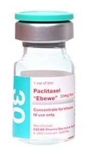 Показания к применению— рак яичников (терапия первой линии в комбинации с препаратами платины и терапия второй линии при метастазах после стандартной терапии, не давшей положительного результата) . — рак молочной железы (в качестве терапии первой и второй линии, а также адъювантного лечения) . — немелкоклеточный рак легких (терапия первой линии больных, которым не планируется проведение хирургического лечения и/или лучевой терапии /в комбинации с цисплатином/) . — саркома Капоши у больных СПИД (терапия второй линии, после неэффективной терапии липосомальными антрациклинами).Применение при беременности и кормлении грудьюКонтролируемых исследований применения паклитаксела у беременных женщин не проводилось. Исследования на животных показали эмбриотоксический, тератогенный и мутагенный эффекты паклитаксела. Поэтому при беременности не следует применять паклитаксел. Не известно, выделяется ли паклитаксел с грудным молоком, поэтому во избежание токсического действия препарата на младенца, в период лечения следует прекратить грудное вскармливание Пациентам во время лечения препаратом Паклитаксел-Эбеве и, по крайней мере, в течение 3-х месяцев после окончания терапии следует использовать надежные методы контрацепции.Противопоказания— повышенная чувствительность к компонентам препарата — повышенная чувствительность к другим препаратам, лекарственная форма которых включает полиоксиэтилированное касторовое масло — исходное содержание нейтрофилов менее 1500/мкл у пациентов с солидными опухолями — исходное (или зарегистрированное в процессе лечения) содержание нейтрофилов менее 1000/мкл при саркоме Капоши у больных СПИД — беременность — лактация (грудное вскармливание) — детский возраст (безопасность и эффективность не установлены). С осторожностью применяют у пациентов с угнетением костномозгового кроветворения (в т.ч. после химио- или лучевой терапии), печеночной недостаточностью, острых инфекционными заболеваниями (в т.ч. опоясывающий лишай, ветряная оспа, герпес), тяжелым течением ИБС, с инфарктом миокарда в анамнезе, при аритмии.Состав1 мл паклитаксел 6 мг.