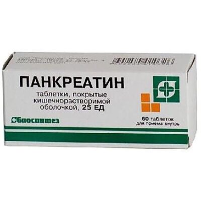 Панкреатин 25 ед таблетки п.о кш/раств 60шт