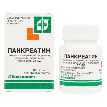 Показания Панкреатические ферменты не абсорбируются из ЖКТ, вследствие чего классические фармакокинетические исследования не проводились. Фармакологическое действие Ферментное средство. Содержит панкреатические ферменты — амилазу, липазу и протеазы, которые облегчают переваривание углеводов, жиров и белков, что способствует их более полному всасыванию в тонкой кишке. При заболеваниях поджелудочной железы компенсирует недостаточность ее внешнесекреторной функции и способствует улучшению процесса пищеварения. Лекарственное взаимодействие При одновременном применении с антацидами, содержащими кальция карбонат и/или магния гидроксид, возможно уменьшение эффективности панкреатина. При одновременном применении с препаратами железа возможно уменьшение абсорбции железа. Возможно снижение всасывания фолиевой кислоты при одновременном применении с препаратами панкреатина. Эффект гипогликемических средств для приема внутрь (таких как акарбоза, миглитол) может снижаться при одновременном применении с препаратами пищеварительных ферментов, содержащих ферменты, расщепляющие углеводы.