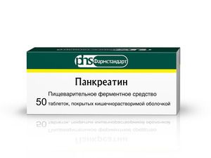 Пакреатин — пищеварительное ферментное средство. Выпускается в форме таблеток, кишечнорастворимой оболочкой (125 мг). Препарат компенсирует недостаточность внешнесекреторной функции поджелудочной железы, оказывает протеолитическое, амилолитическое и липолитическое действие. Входящие в состав панкреатина ферменты (липаза, амилаза, трипсин, химотрипсин) способствуют расщеплению белков до аминокислот, жиров до глицерина и жирных кислот, крахмала до декстринов и моносахаридов. Улучшает функциональное состояние желудочно-кишечного тракта, нормализует процессы пищеварения. Принимается при внешнесекреторной недостаточности поджелудочной железы: хронический панкреатит, панкреатэктомия, состояние после облучения, диспепсия, муковисцидоз, метеоризме, диареи неинфекционного генеза и в случаях нарушения усвоения пищи.Отпускается без рецепта.