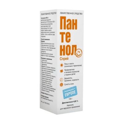 Показания Всасывание При местном применении быстро абсорбируется кожей и превращается в пантотеновую кислоту, связывается с белками плазмы крови (главным образом с бета-глобулином и альбумином). Концентрация ее в крови — 0.5-1 мг/л, в сыворотке крови — 100 мкг/л. Выведение Пантотеновая кислота не подвергается в организме метаболизму (кроме включения в Ко-А), выводится в неизмененном виде. Фармакологическое действие Активное вещество препарата — декспантенол — в организме переходит в пантотеновую кислоту, которая, являясь составной частью кофермента А (Ко-А), играет важную роль в процессах ацетилирования и окисления, участвует в углеводном, жировом обмене и в синтезе ацетилхолина. Оказывает некоторое противовоспалительное действие и улучшает регенерацию тканей. Лекарственное взаимодействие Взаимодействие препарата Пантенолспрей с другими лекарственными препаратами не выявлено. Одновременное использование презервативов и пены препарата Пантенолспрей, наносимой в области гениталий или в анальной области, может ухудшить эффективность презервативов, поскольку их прочность на растяжение может уменьшиться из-за содержащегося парафина.