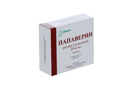 Папаверина г/хл 2%, 2 мл, 10 шт, раствор для инъекций