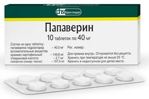 Папаверин — спазмолитическое средство. Выпускается в форме таблеток (40 мг). Препарат снижает тонус гладких мышц, оказывает сосудорасширяющее и спазмолитическое действие. В больших дозах снижает возбудимость сердечной мышцы и замедляет внутрисердечную проводимость. Действие на центральную нервную систему выражено слабо.Применяется при спазмах гладких мышц: органов брюшной полости (холецистит, пилороспазм, спастический колит), почечной колике, спазмах сосудов головного мозга, периферических сосудов (эндартериит), сердца (стенокардия – в составе комплексной терапии), бронхоспазмах.Отпускается без рецепта.